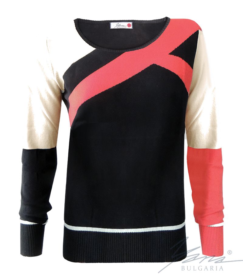 Dreifarbiger Intarsienpullover mit O-Ausschnitt für Damen in Schwarz
