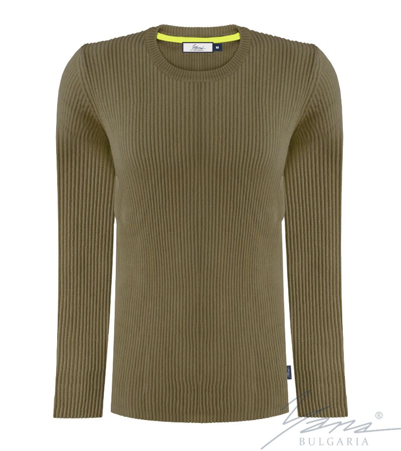 Férfi kerek nyakú pulóver, hosszú ujjú, színeskhaki