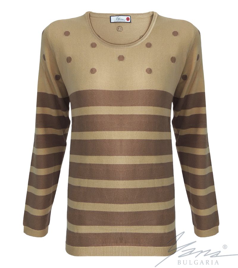 Свитер женский двухцветный с инкрустацией "О" вырез бежевый